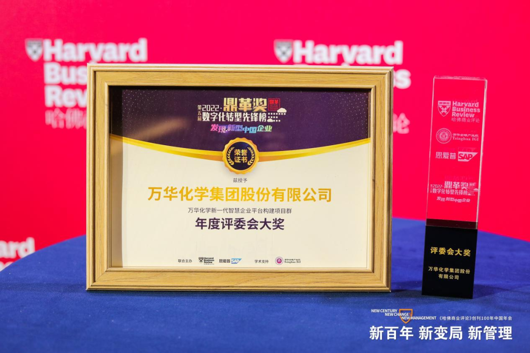 11月9日,在《哈佛商业评论》创刊百年中国年会上,万华化学凭借“新一代智慧企业平台构建项目群”实践,从200余家企业中脱颖而出,荣获2022“新型中国企业”年度评委会大奖。