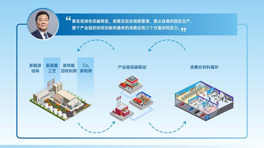 会上,寇总详细介绍了万华争做绿色低碳发展的时代先锋的新举措。“要实现绿色低碳转型, 就要加强全链路管理,从自身的园区生产、整个产业链的协同创新和最终的消费应用三个方面协同发力。首先在园区内做到四新:新能源结构、新装置工艺、新热能回收利用以及二氧化碳的新利用;同时以创新产品为基础,积极为上下游行业提供一体化解决方案,共同搭建循环低碳生态圈。”