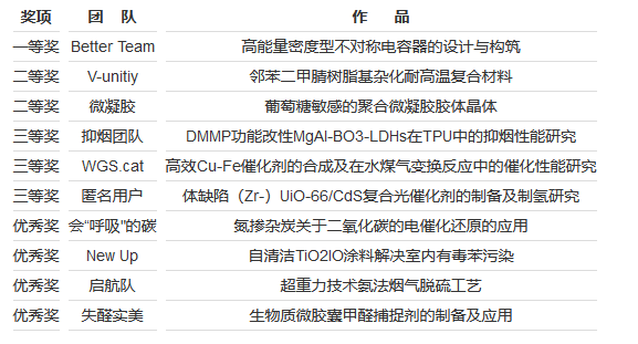 通过团队作品展示和现场答辩环节的激烈角逐,来自大连理工大学Better Team团队凭借《高能量密度型不对称电容器的设计与构筑》作品摘取本届大赛桂冠。