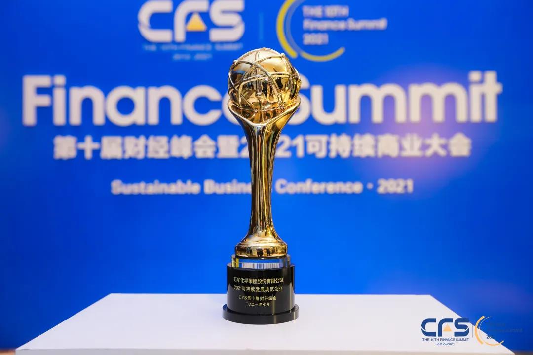 7月28日,CFS第十届财经峰会暨2021可持续商业大会在上海举行。万华化学凭借在可持续发展方面的优异表现,获评“可持续发展典范企业”。